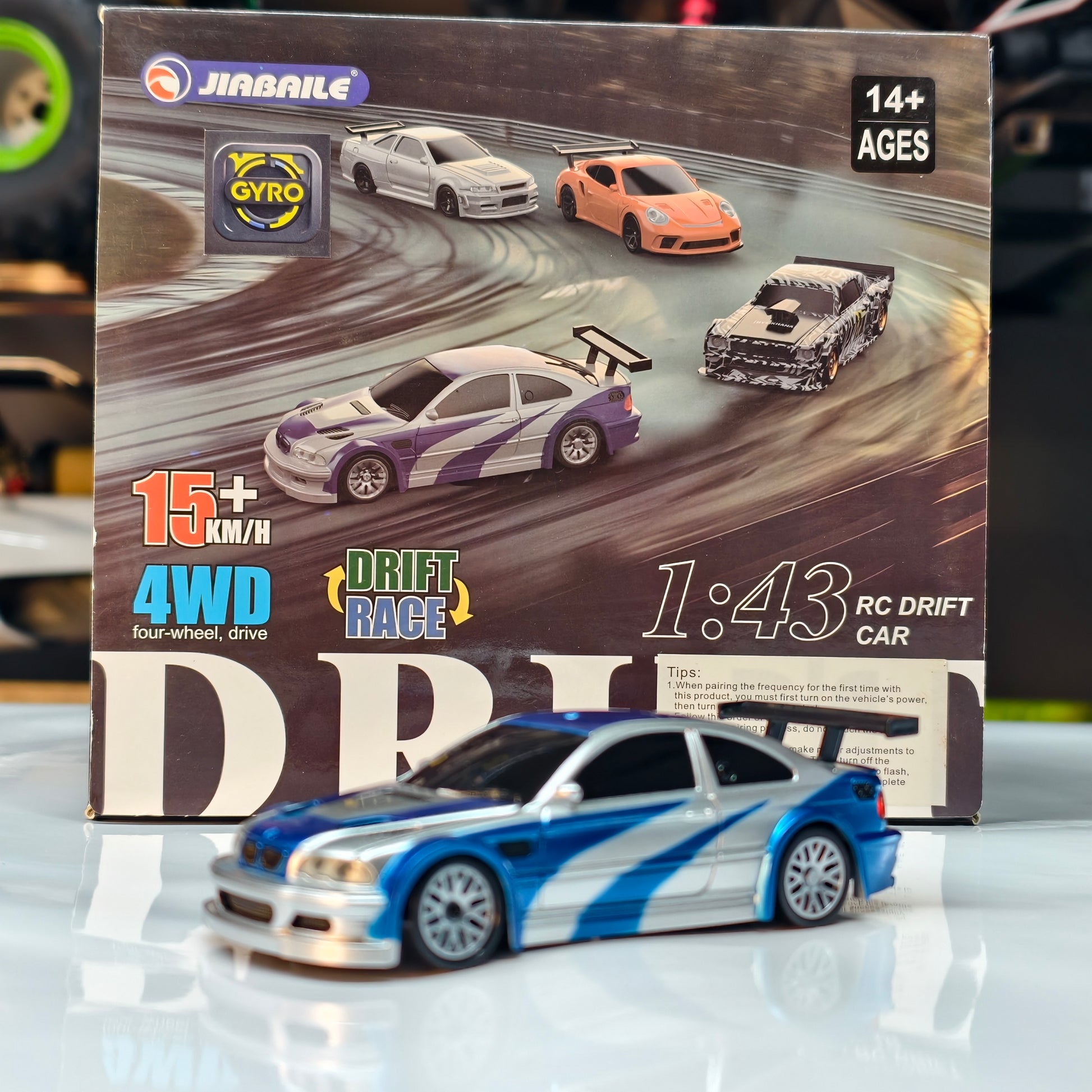 JIABAILE GYRO 1:43 RC Drift Car. "RC" stands for Remote Control, and "Drift Car" indicates its design for performing controlled slides or drifts.