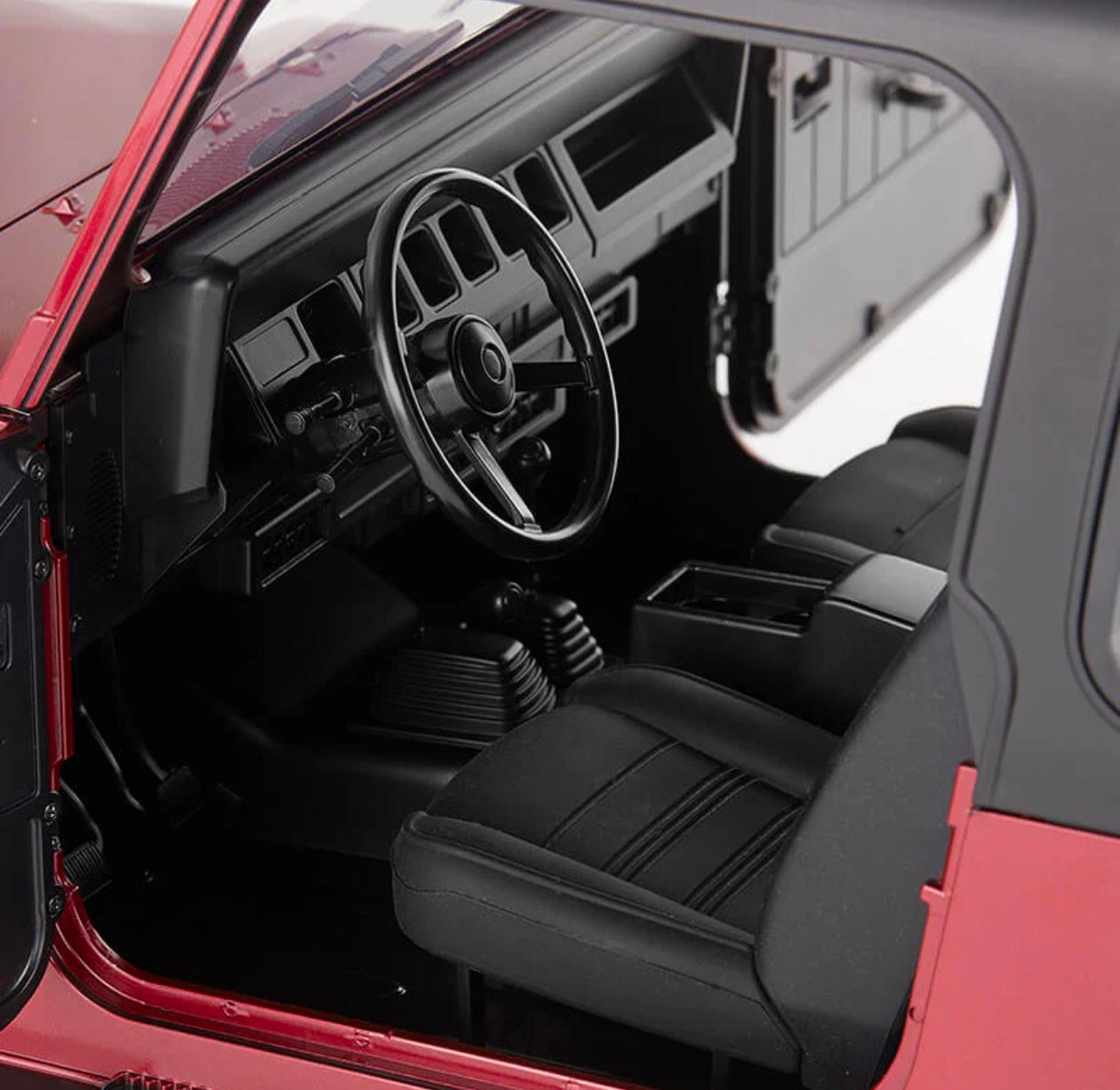 Features scale-accurate body lines, molded details, roof rack, mirrors, bumpers, snorkel, and interior detailing for a true off-road look.