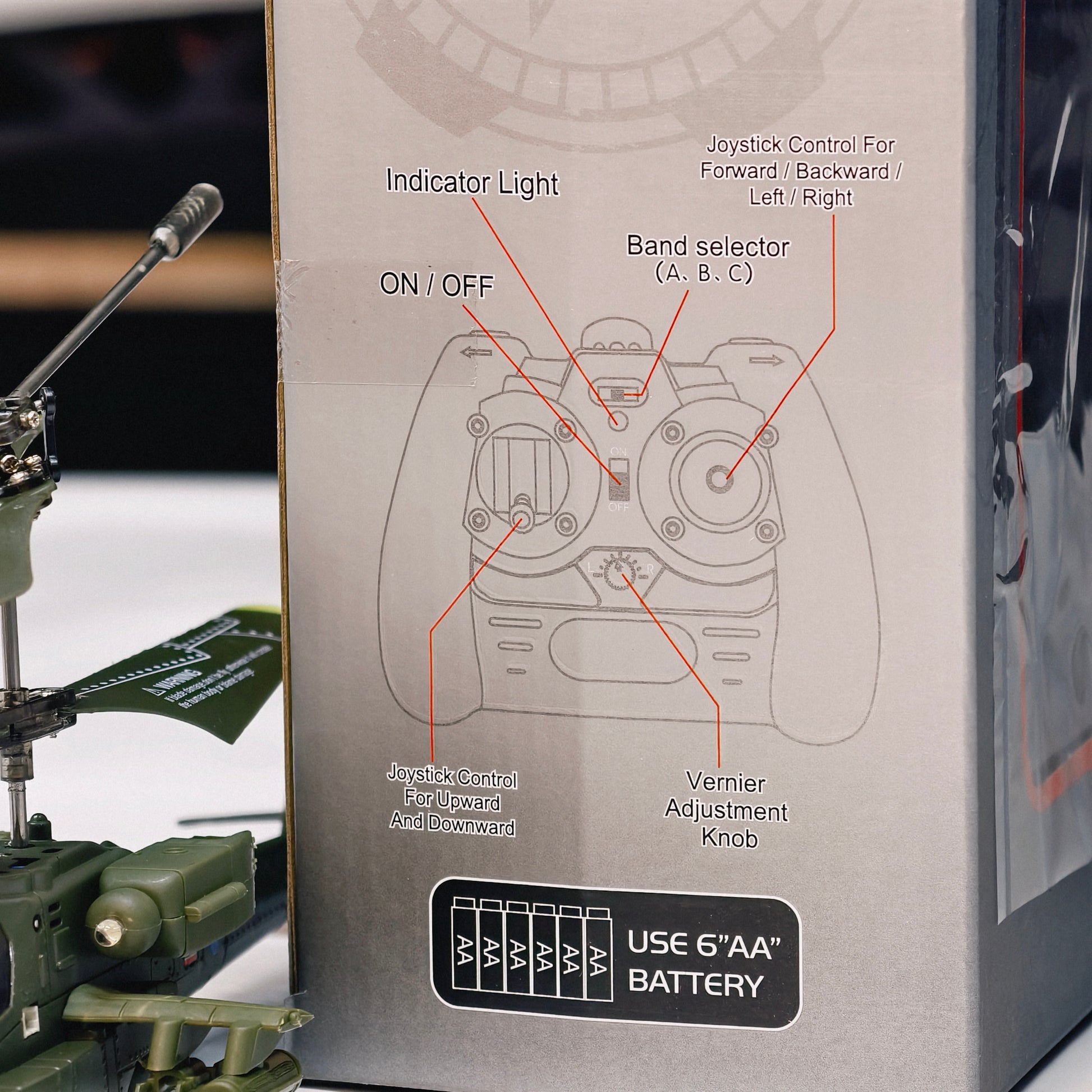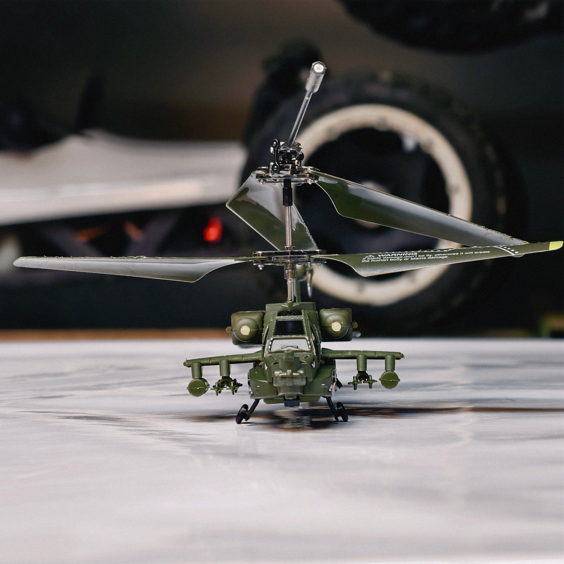 Syma S109G 3.5 Channel RC Helicopter with Gyro, designed to resemble an Apache AH-64 helicopter.