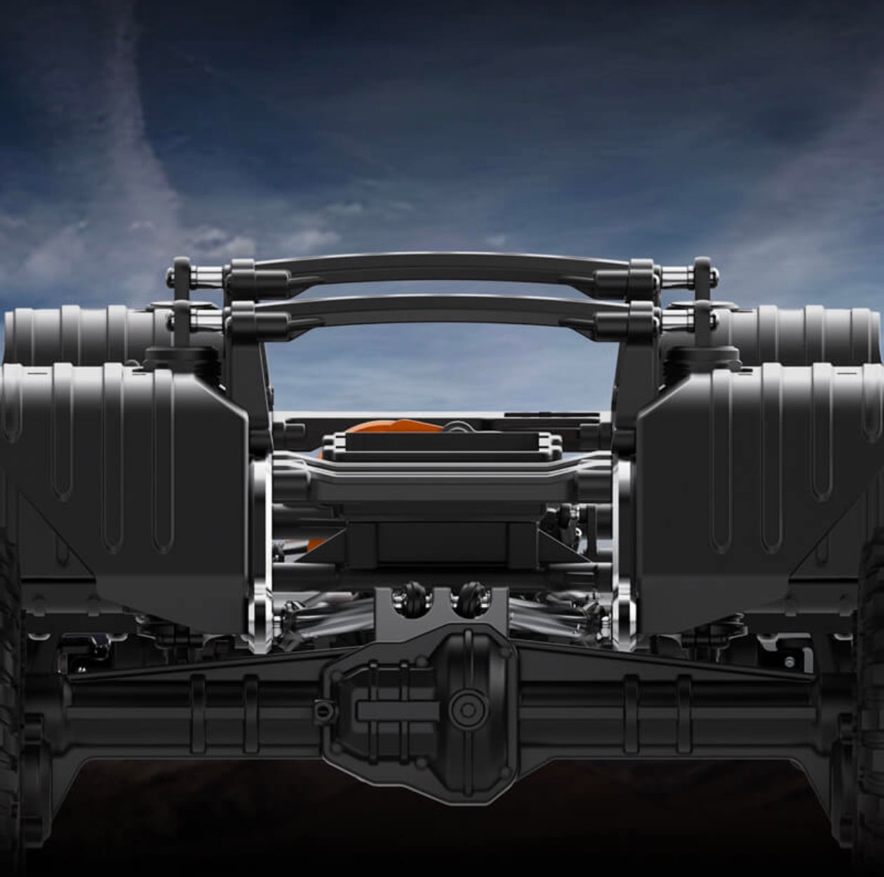 Multi-link suspension with oil-filled shocks offers maximum articulation and stability, ensuring confident crawling over obstacles.